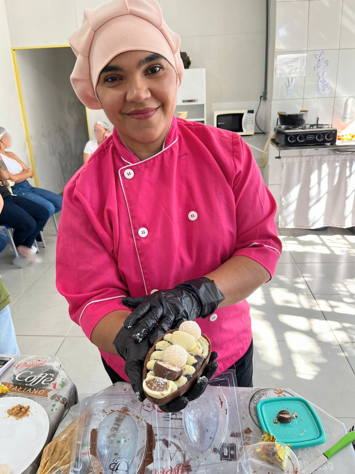 Durante a capacitação, também são apresentadas possibilidades de recheios e combinações de sabores, como paçoca, beijinho, brigadeiro de chocolate e doce de leite. Segundo a instrutora, o conhecimento adquirido pode ser aplicado não apenas na produção de ovos de Páscoa, mas também em outras áreas da confeitaria ao longo de todo o ano.