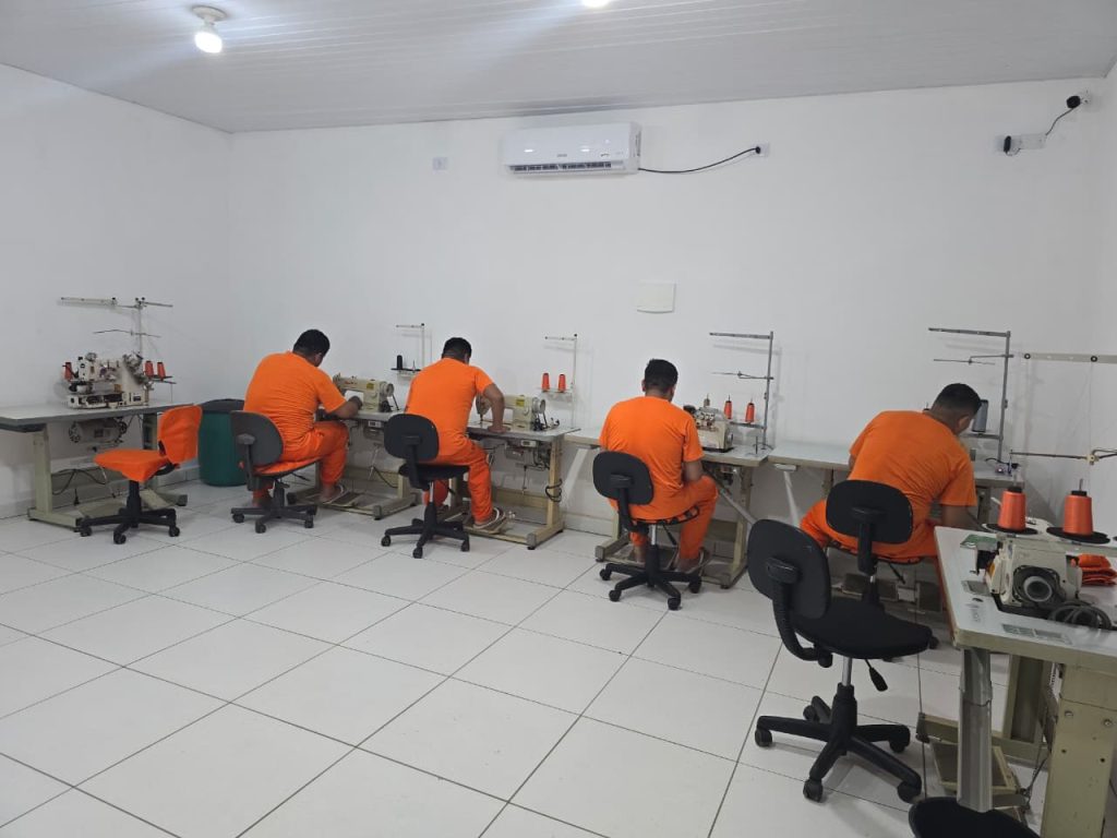 Com o novo espaço, o número de internos trabalhando na oficina de costura dobrou, passando de 4 para 8 custodiados, ampliando a oferta de atividades laborais e contribuindo diretamente para o processo de remição de pena — benefício previsto em lei que reduz um dia de pena a cada três dias trabalhados.
