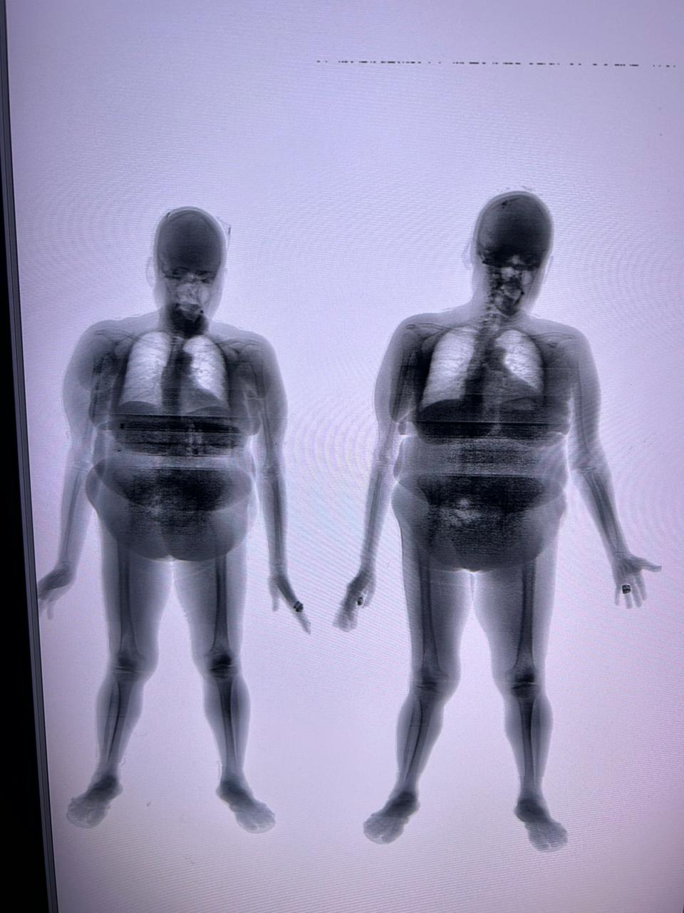 A irregularidade foi identificada durante o procedimento de revista realizado por meio do equipamento de inspeção corporal Bodycam. O policial penal responsável pela triagem visualizou, na imagem do raio-X, objetos compatíveis com aparelhos telefônicos.